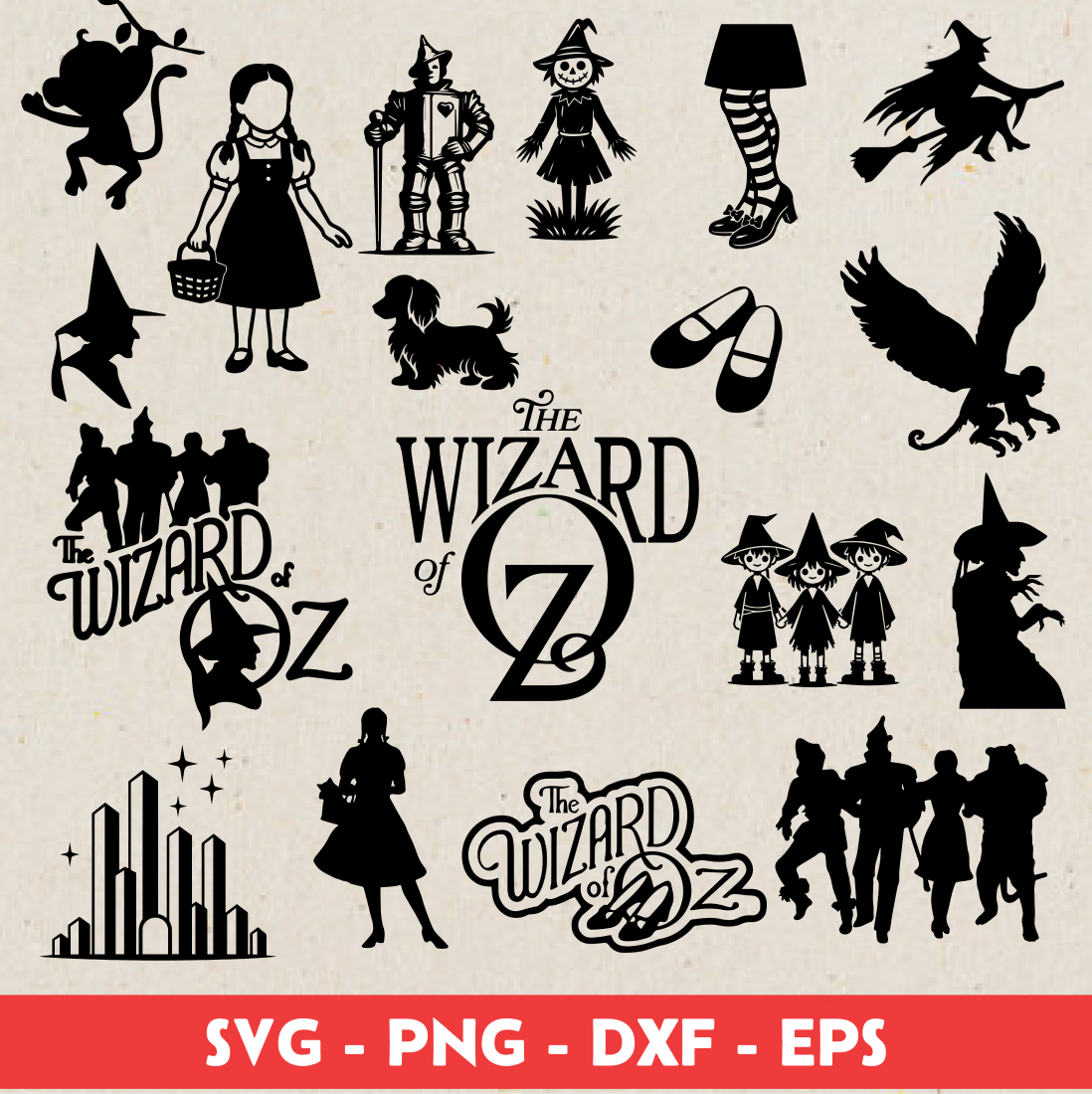 Wizard Of Oz bundle svg – 17 images inside, SVG, PNG and EPS formats, making it compatible with Cricut, Silhouette, laser cutters, and sublimation printers. Great for DIY gifts, bookish merch, or personal projects with a sentimental touch.